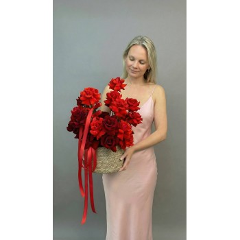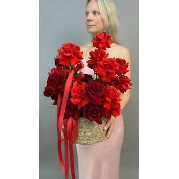 Hydrangea pink 2pcs Ecuador red roses 4pcs Mentha 3pcs Spray red 2pcs Eucalyptus 3pcs