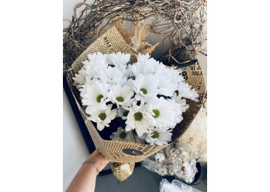 Букет из 3х веток ромашковидных хризантем в крафт-упаковке. Букет-комплимент, который долго будет радовать вашего близкого человека