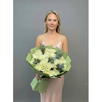 Букет-комплимент из ромашковидных хризантем, который долго будет радовать вашего близкого человека.